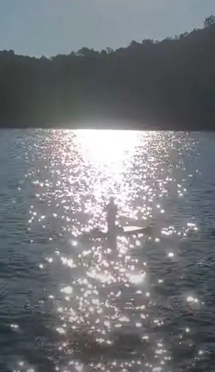 The place is packed, both the shoreline and the water, but we make some space to pass the football around in the water. There’s a long-gone tree sticking up out of the water, and naturally people climb up to do their best cannonball into the deep blue water below.